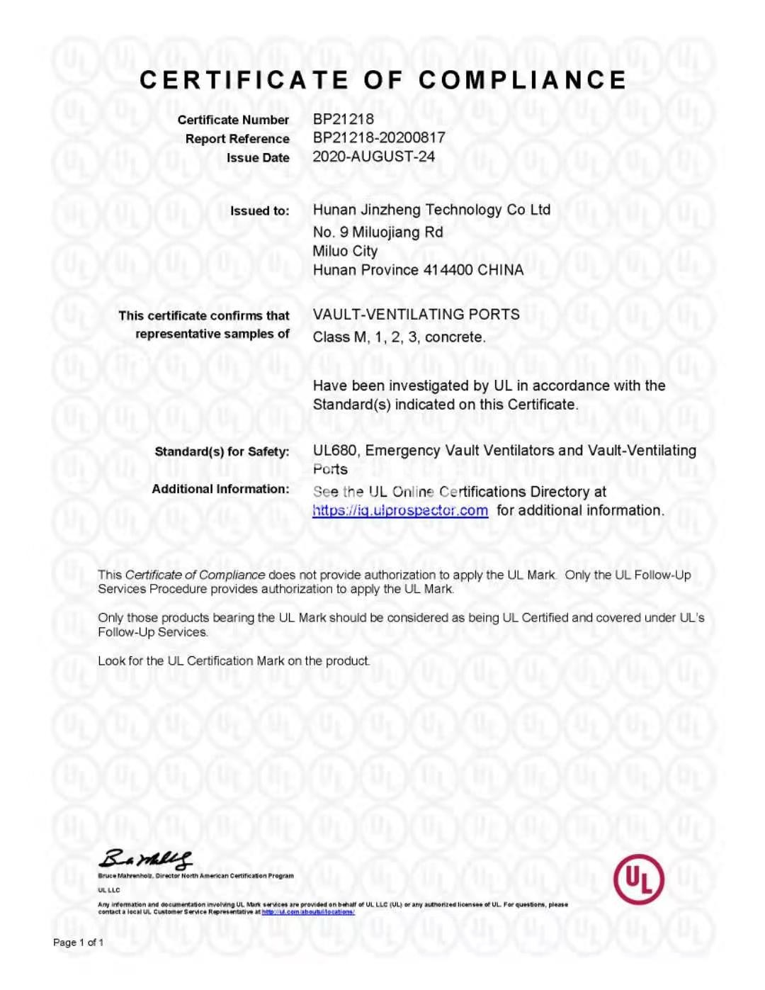 湖南麻豆网观看黄色三级片科技有限公司生產的麻豆三级美女在线观看、金庫壁板、金庫通風口三款產品成功通過美國UL-608全係列認證(M級、1級、2級、3級)